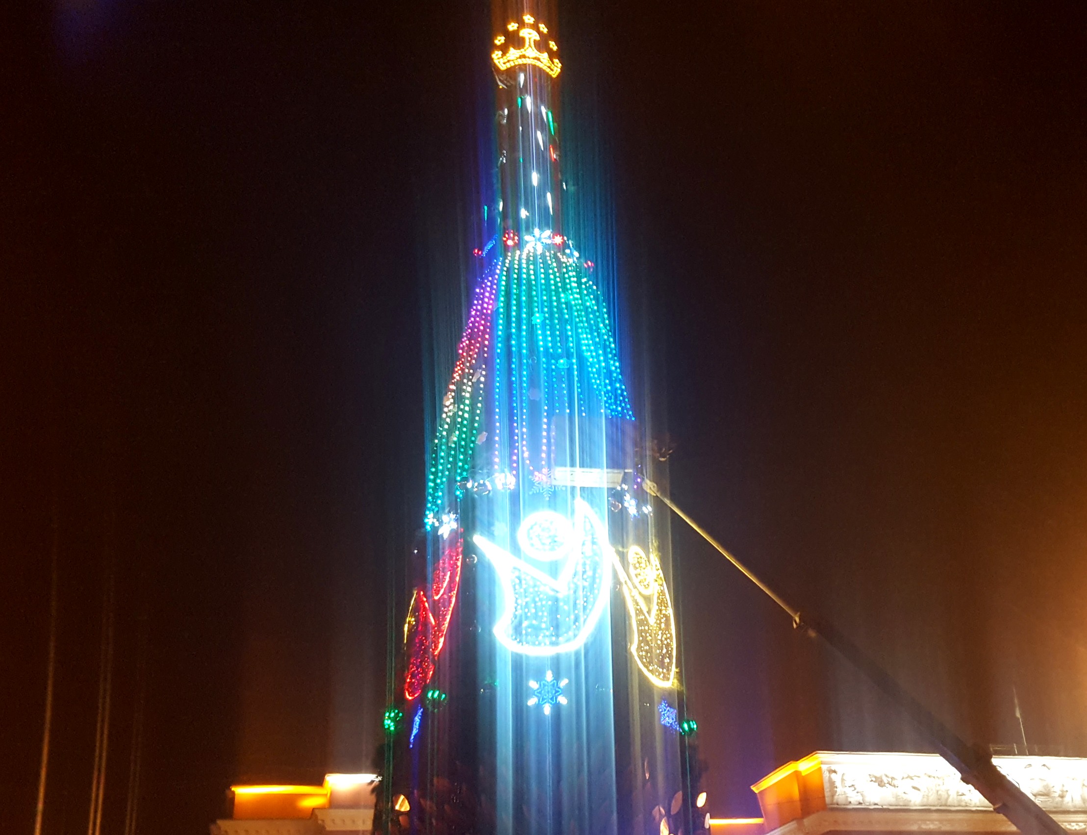 Третья часть елки состоит из светоиллюминационной радуги — в честь 20-летия установления мира и согласия на таджикской земле.