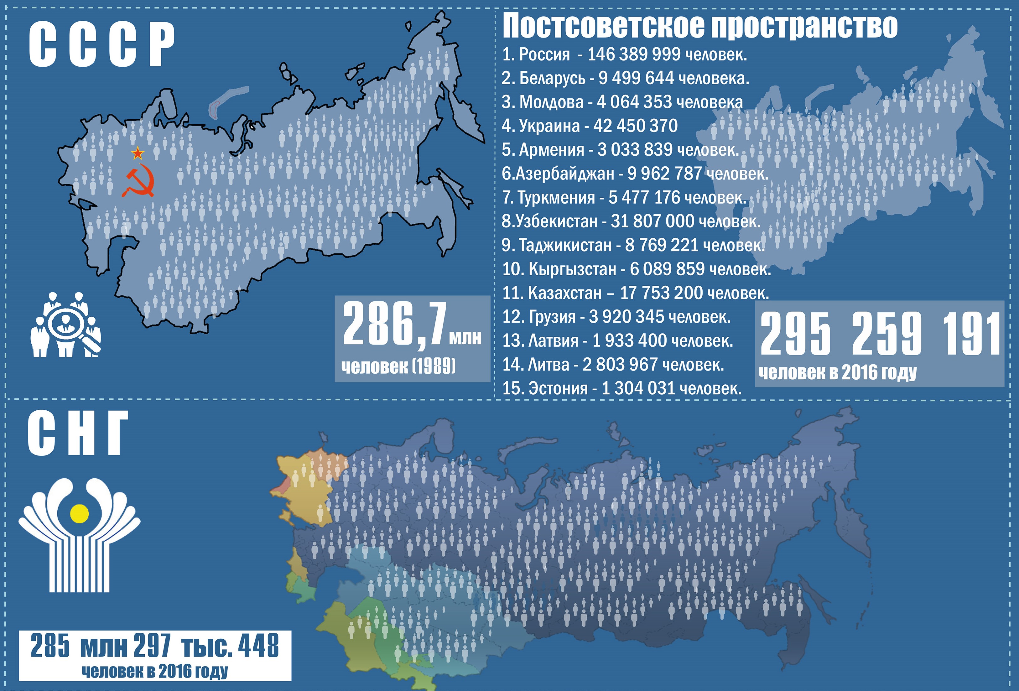 В Таджикистане население растет, но в других странах постсоветского пространства оно уменьшается. В целом численность населения в республиках бывшего СССР за последние 27 лет выросла всего на 9 миллионов. В то время как, например, в США оно увеличилось почти на 80 миллионов. Для сравнения смотрите нашу инфографику.