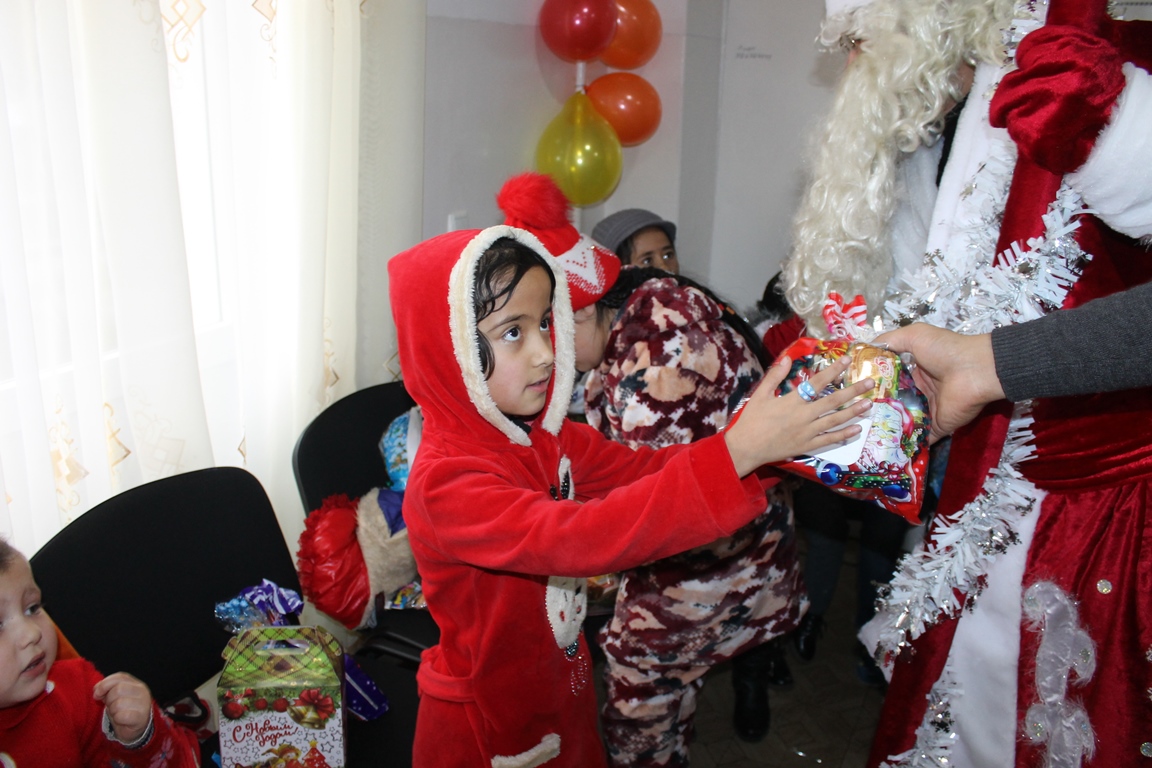 Далее наш Дед Мороз отправился в Согдийскую область: здесь он пришел в гости к детям из детского дома в городе Бустон, худжандского Дома Малютки, и центра лечения онкологических заболеваний у детей в г. Худжанд. Кроме сладостей, сувениров, обеда и веселой программы, в детский дом были переданы масляные обогреватели, а Дом Малютки получил комплекты постельного белья для всех живущих там детишек.