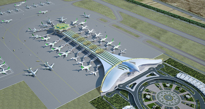 Оба здания аэропорта, обошедшегося бюджету Туркменистана в 2,2 млрд долларов имеют форму птиц. Здание аэропорта также было внесено в Книгу Рекордов Гиннеса за самое большое в мире архитектурное изображение коврового гёля (орнамента) на крыше здания основного пассажирского терминала. Сообщалось, что аэропорт может обслуживать до 17 млн. пассажиров в год.