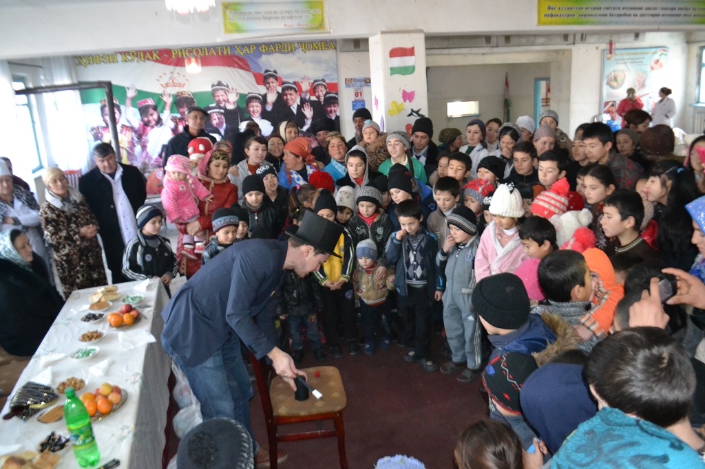 По пути в дом-интернат для душевнобольных Джаббор Расуловского района, где среди взрослых пациентов проходят лечение 76 детей, иллюзионист Валентин Соколов ответил на наши вопросы. «В Таджикистане я впервые и перед приездом у меня было несколько опасений. Первое, когда я показываю фокусы, я все время общаюсь со зрителем. Боялся, поймет ли меня публика. Мне сказали, что здесь все говорят по-русски и понимают его, и это оказалось правдой. К моему удивлению, они не просто говорят на нем, а говорят хорошо, понимая тонкости языка. Второе волнение, как у любого артиста, касалось того, как примут – как-никак иностранец… И, когда узнавали, что я из России, то на лицах появлялись добрые улыбки, чувствовалось теплота, встречали как своего. Гостеприимные люди, приятное общение со всеми, кого я встречал. Очень вкусная национальная кухня. Я даже выучил слово «бамазза» (улыбается)», — рассказал Валентин.