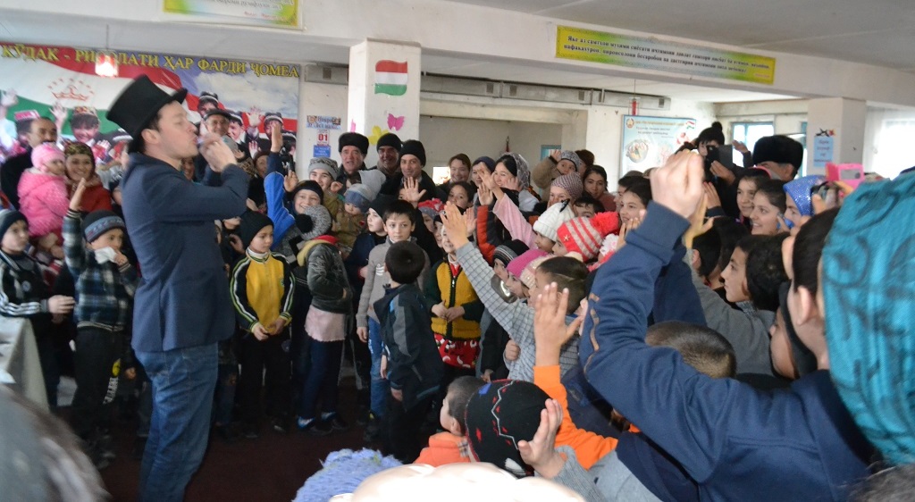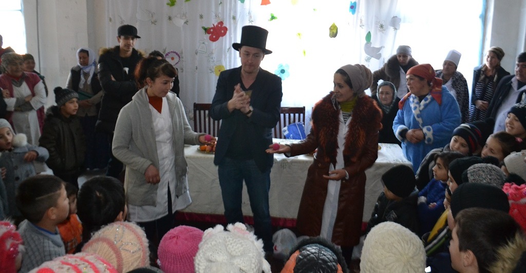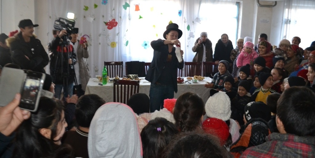 Известный московский иллюзионист Валентин Соколов с гуманитарными гастролями побывал у Согдийских детей с ограниченными возможностями.