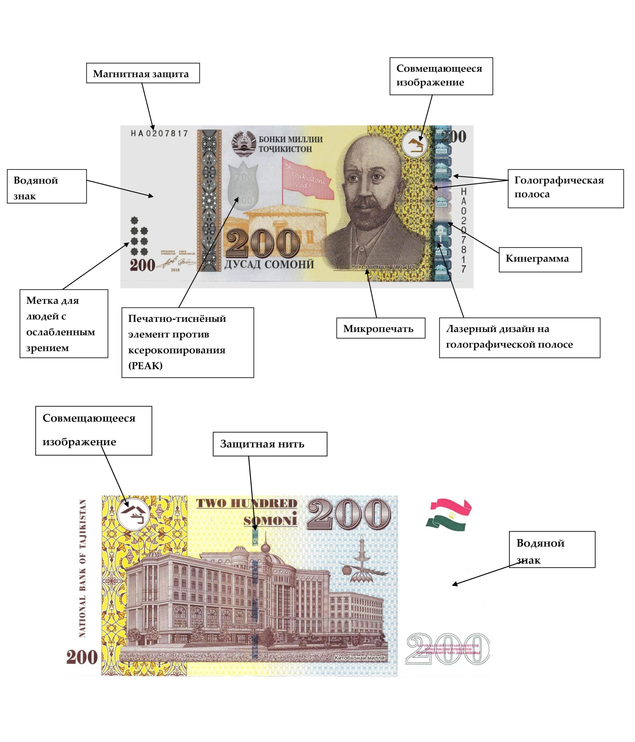 Сегодня мы ознакомим вас с защитными элементами банкноты достоинством 200 сомони.