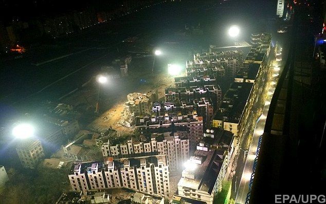 В городе Ухань в центральном Китае одновременно снесли 19 зданий, стоявших рядом. Каждое из них было высотой от 7 до 12 этажей. Под домами разложили 120 тысяч зарядов, общий вес взрывчатки составил пять тонн. Для безопасности взрывы происходили не одновременно, а с задержкой в доли секунды. Рядом со взорванными зданиями находились железнодорожный виадук, торговый центр, трансформаторная подстанция и жилые дома. Ничто из перечисленного не пострадало.