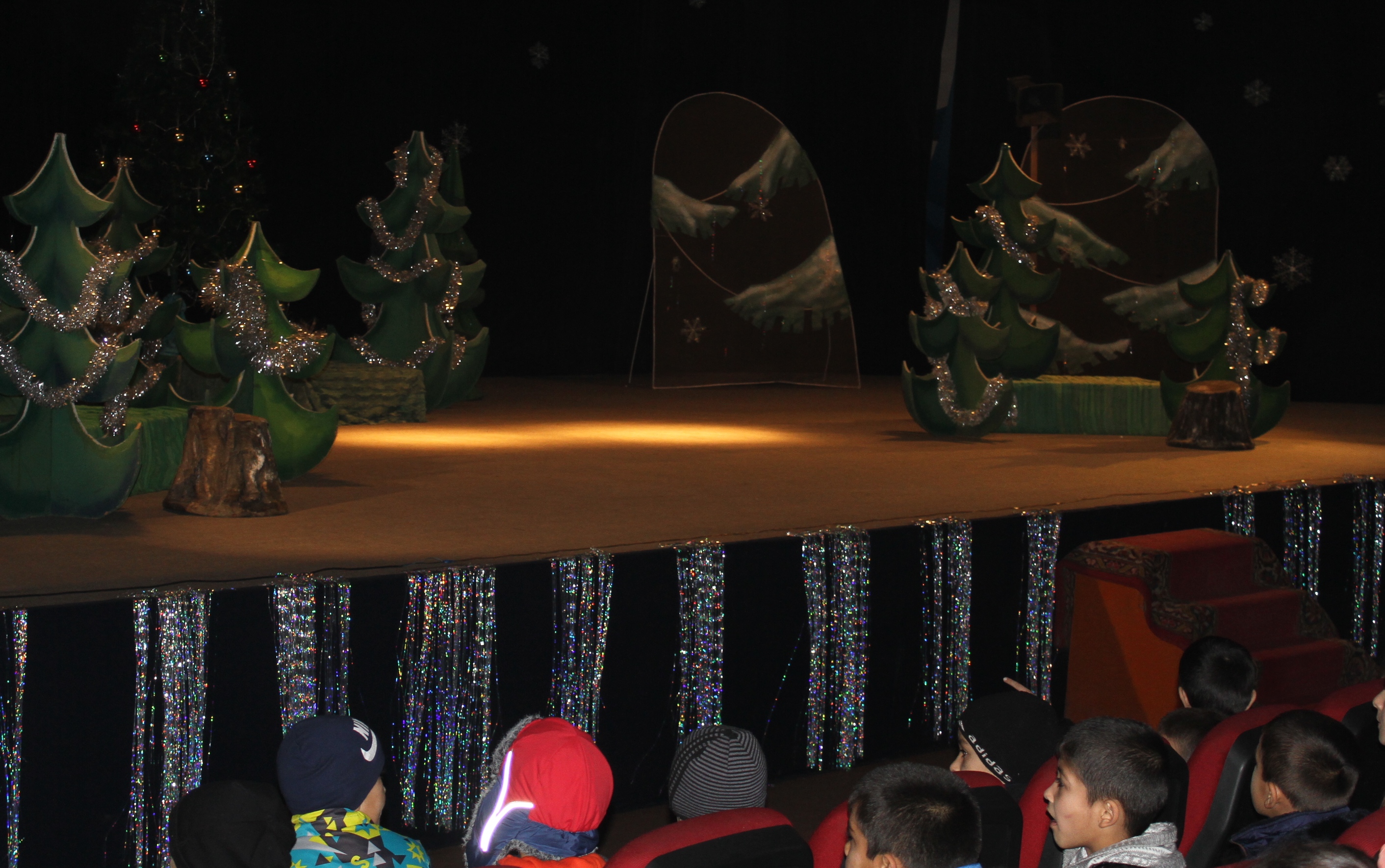 Отправились туда, сами открыли дверь и вошли. Публика была уже внутри – школьники четвертых или пятых классов сидели на местах в зрительном зале. Играла какая-то новогодняя, детская музыка, на сцене театра стояли картонные елки. Сцену огородили темной материей, по бокам расставили осветительные приборы. Все чисто и аккуратно, но так, как бывает на школьных утренниках, когда ученики сами сооружают сцены в актовых залах.