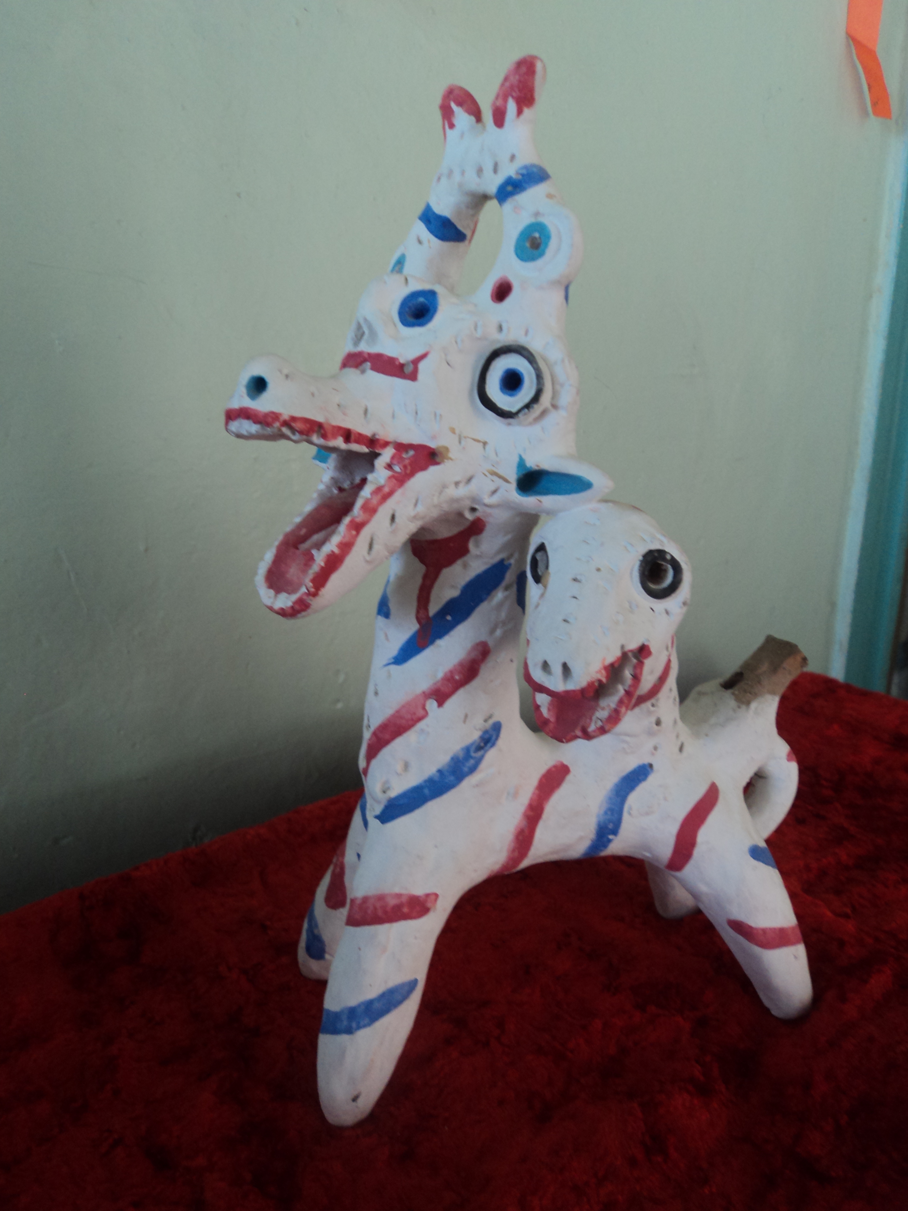 Усто изготавливал их, покрывая незатейливой росписью в виде мазков с подтеками на желто-коричневом фоне. Раньше он лепил крупные игрушки, сантиметров по двенадцать высотой, потом перешел на маленькие, удобные для детей. Среди тысяч вылепленных им фигурок нет двух одинаковых.