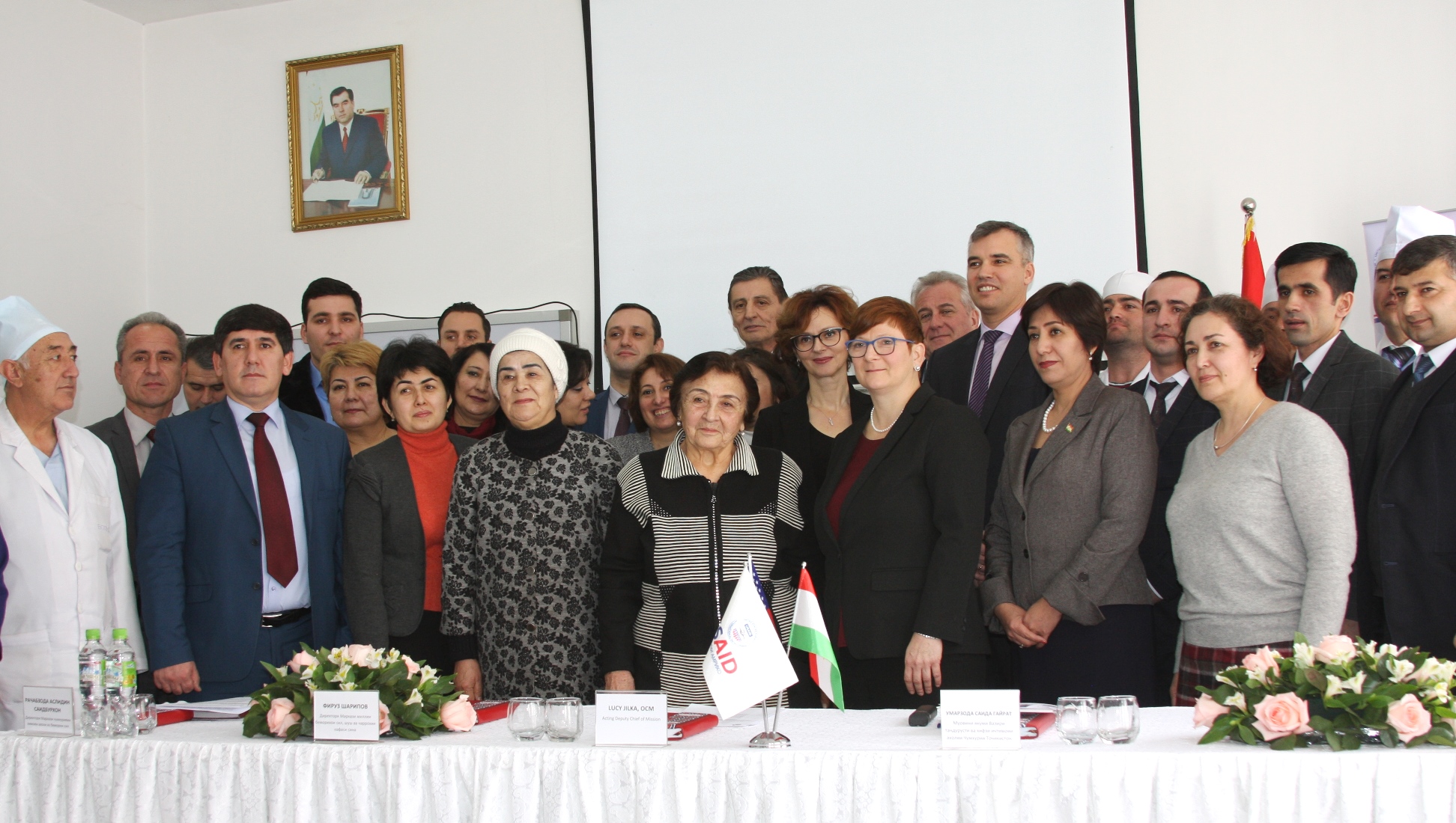 Исполняющий обязанности заместителя главы дипломатического представительства США в Республике Таджикистан Люси Жилка вместе с первым заместителем министра здравоохранения и социальной защиты населения Таджикистана Саидой Умарзода сегодня внедрили препарат бедаквилин в Таджикистане.