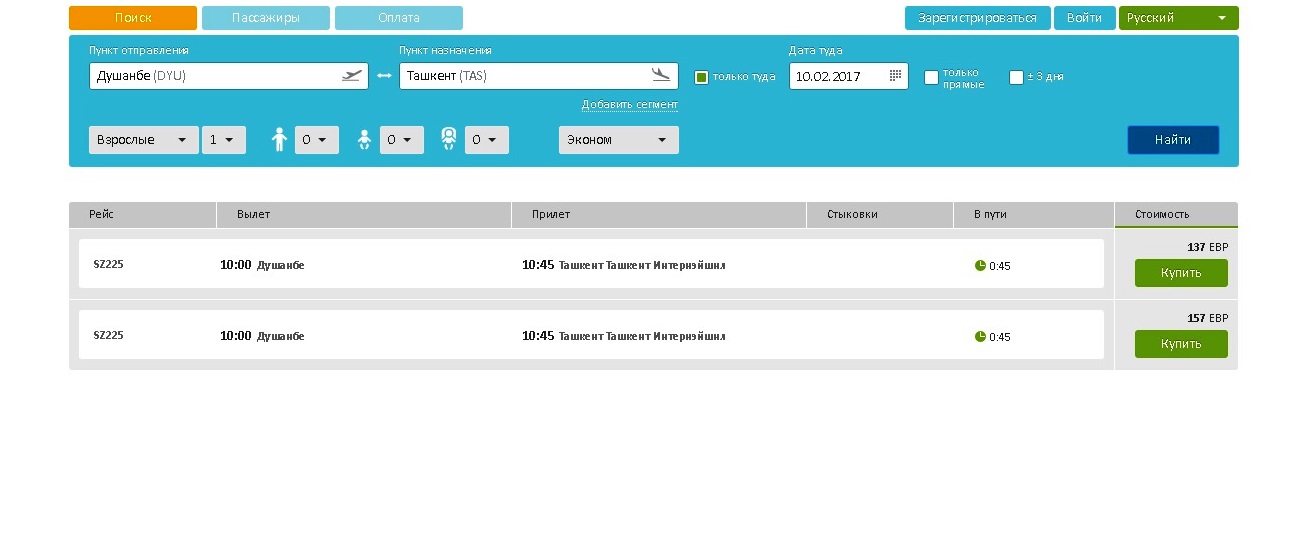 Ранее на сайте «Сомон Эйр» в разделе он-лайн продажи авиабилетов были указаны другие цифры: стоимость билета до Ташкента была указана 177 евро, а из Ташкента – более 200 евро.