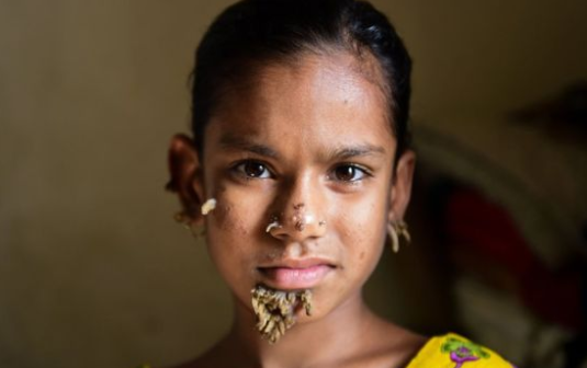 Впервые редкая болезнь проявила себя четыре месяца назад, когда на лице Саханы выросла первая бородавка. Отец девочки тогда не придал этому значения. Известно также, что мать малышки умерла, когда той было 6 лет.