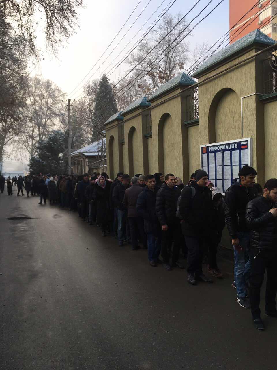 В середине января около тысячи граждан Таджикистана собрались около столичного представительства МВД РФ (по вопросам миграции), где ведется запись на возможность принять участие в программе содействия добровольному переселению соотечественников в Россию. Сотрудники представительства говорят, что такого потока желающих уехать они еще никогда не видели…