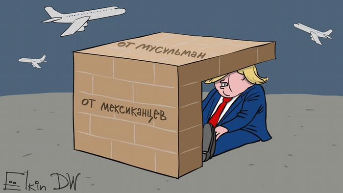 DW собрала карикатуре Сергея Ёлкина о политике Дональда Трампа. После победы Дональда Трампа на выборах президента США неуместно говорить о начале эпохи популизма в политике. Она уже давно настала, считает карикатурист Сергей Ёлкин.