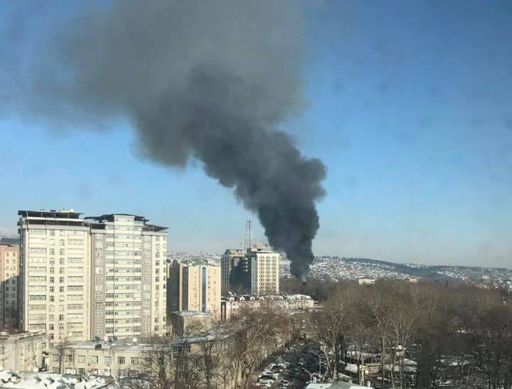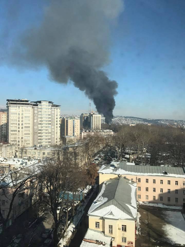 В Душанбе в эти минуты горит здание головного офиса «Амонатбанка», расположенного рядом со зданием КЧС и рынком «Шохмансур».