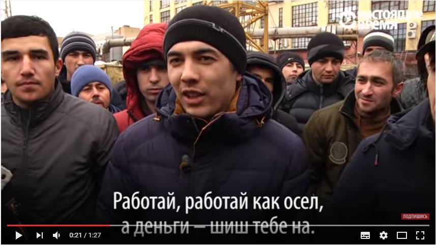 Сотни недовольных сотрудников СМУ «Ингеоком», в основном мигранты из Таджикистана и Узбекистана, собрались у офиса управления и потребовали выплатить им заработанные деньги.