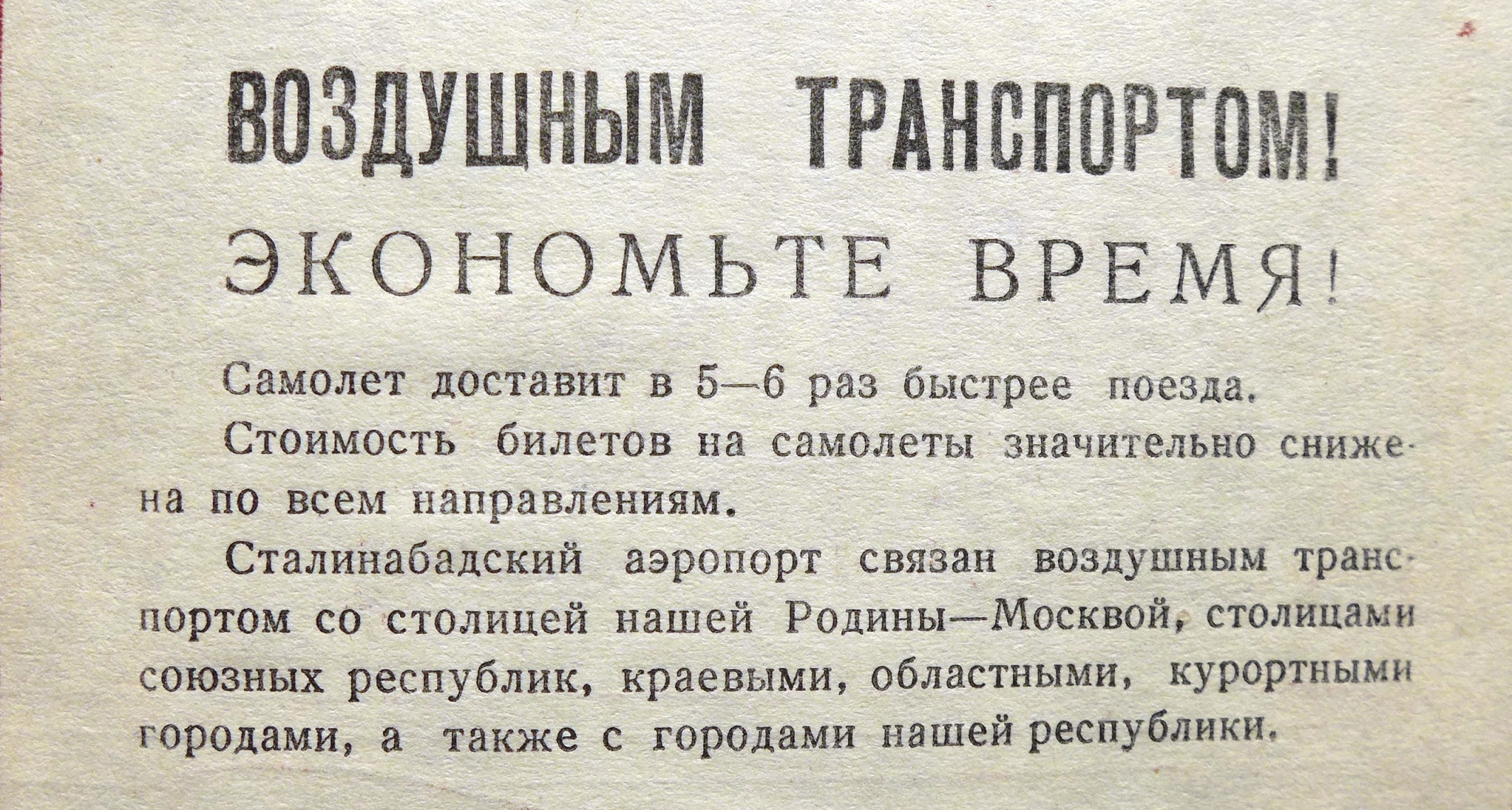 Следует отметить, что в советские годы воздушная связь столицы республики с городом Хорогом не прерывалась никогда, даже в самые тяжелые годы Великой Отечественной войны, что говорит о строгом соблюдении конституционного права населения Советского Таджикистана на транспортную доступность и перемещение на любом виде транспорта в любой населенный пункт нашей страны.