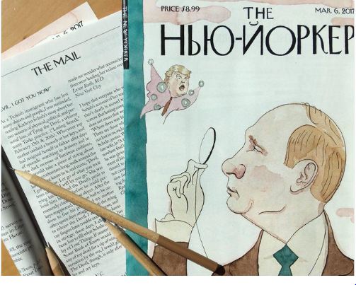 Американский еженедельный журнал The New Yorker вышел с русскоязычной обложкой, на которой изображен российский президент Владимир Путин. В самом журнале опубликована статья о влиянии Кремля на политику в США, сообщается на сайте журнала, пишет РБК.