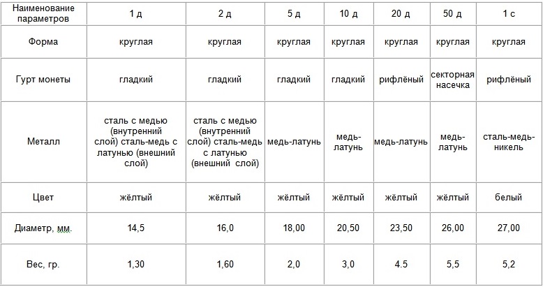 Техническая характеристика монет