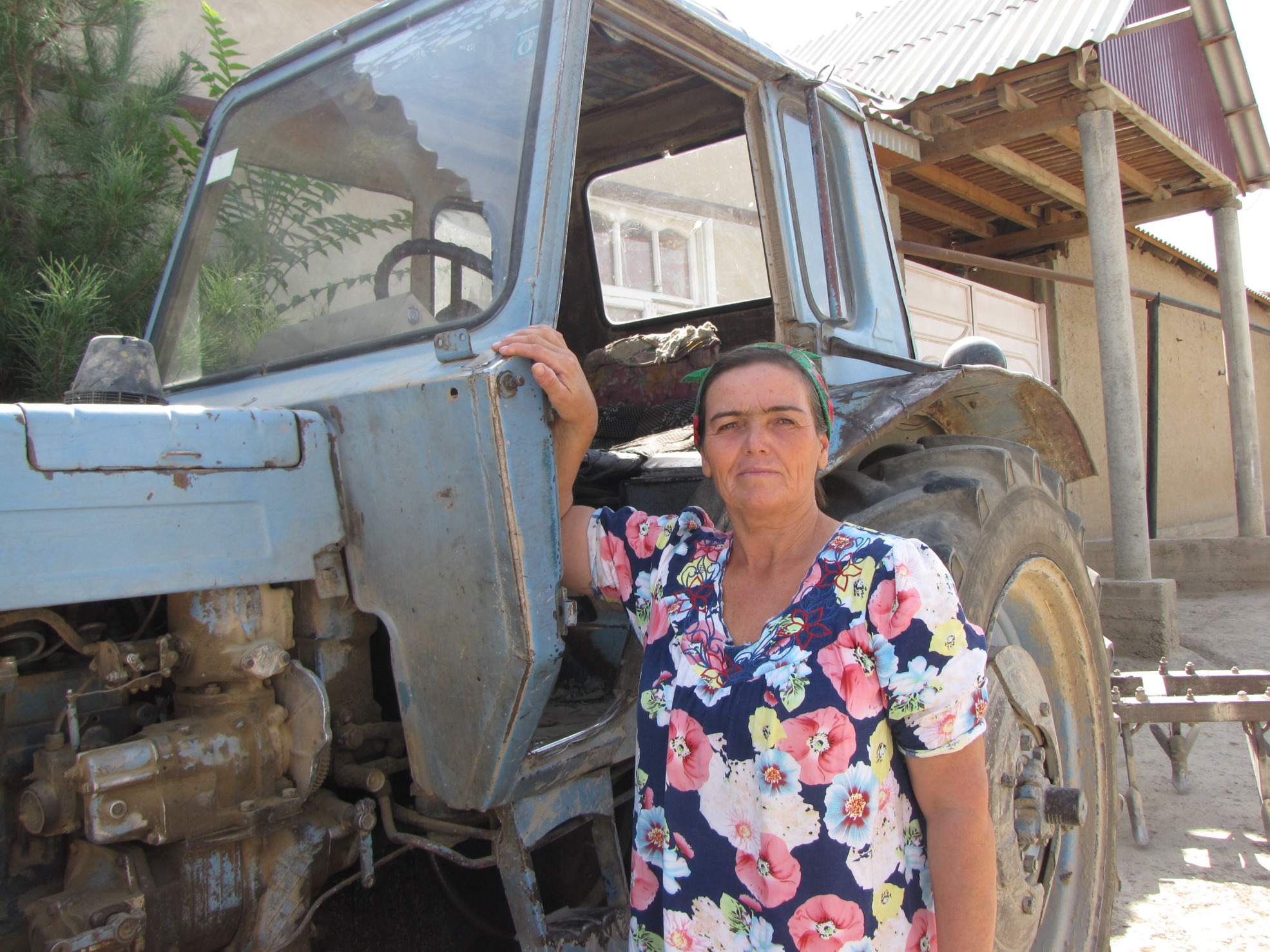Уже 15 лет, как Розия работает в дехканском хозяйстве «Истиклол». Ее работа начинается с февраля — нужно разрыхлить землю, выкорчевать пни и корни, проложить борозду, опрыскать посадки химическими препаратами. А после она везет собранный урожай до пунктов назначения.