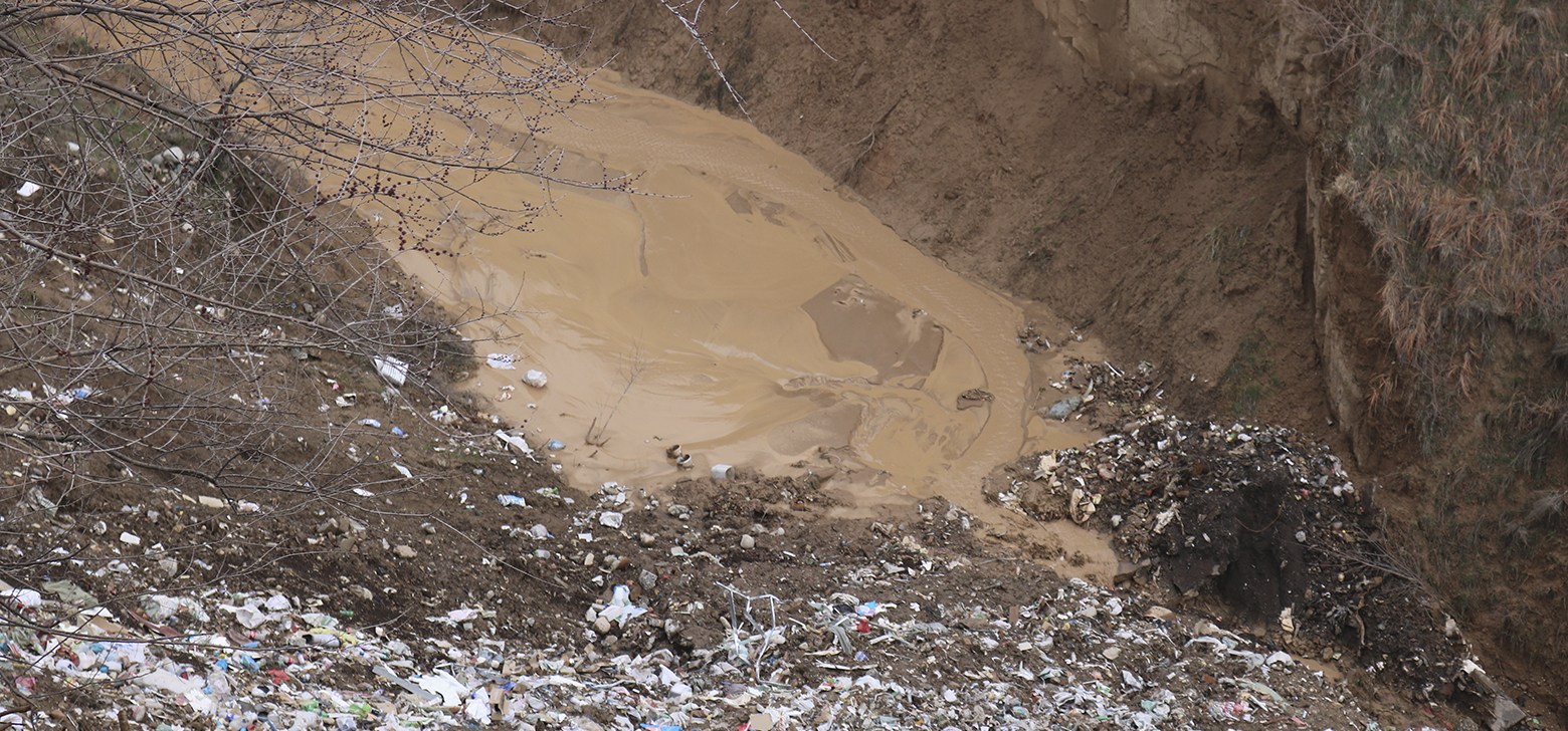 По дну оврага течет очень жидкая глинистая жижа. Местами «ручеек» перекрывает строительный мусор, вывозимый сюда из города, из-за чего подножье склонов стало еще больше рыхлым.