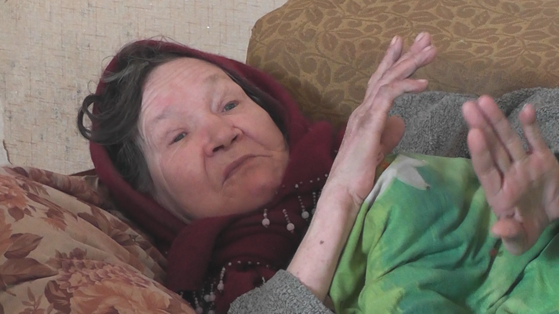 На старом развалившемся диване в верхней одежде лежит укутанная грязным старым одеялом женщина. Знакомимся.