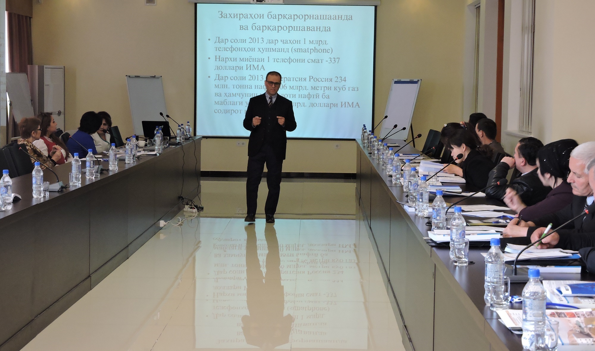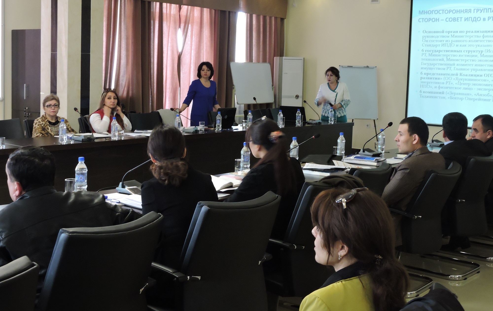 В ходе рабочего семинара с презентациями выступили члены Совета ИПДО Таджикистана – Тоджиниссо Азизова и Собир Вазиров, а также Шахло Джураева и представитель аудиторской компании BDO Бахтиёр Рустамов. Компания BDO прошла отбор на подготовку второго отчета ИПДО.