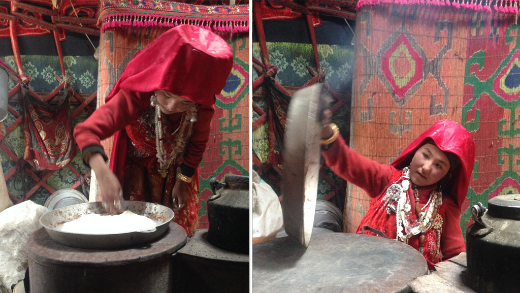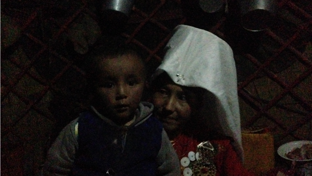 — Путь от заставы до кыргызских поселений оказался неблизким . Доехали до первой стоянки уже в темноте. Началась гостеприимная суета. Мне скорее хотелось познакомиться с людьми, которых я так много видела на разных фотографиях, видео, в репортажах. В соседней юрте, куда я сбежала от суеты, познакомилась с Умулгусун, которая курила сигареты, покачивая бешик, где мирно спал ее месячный ребенок.