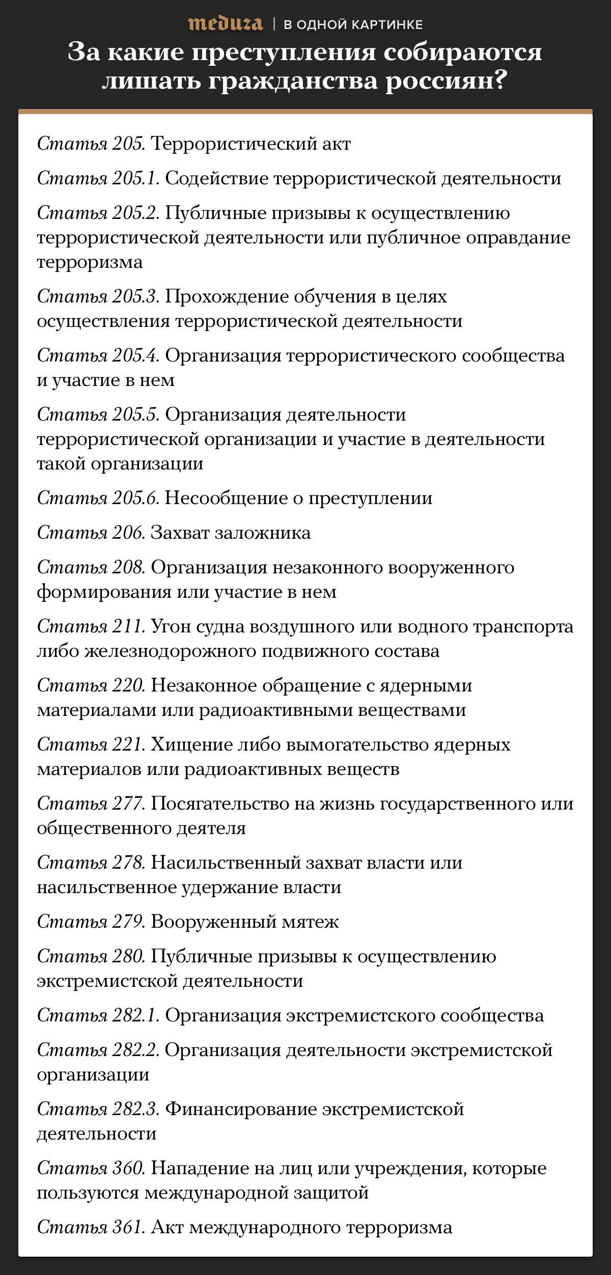 Лишать гражданства смогут любых осужденных по этим статьям?
