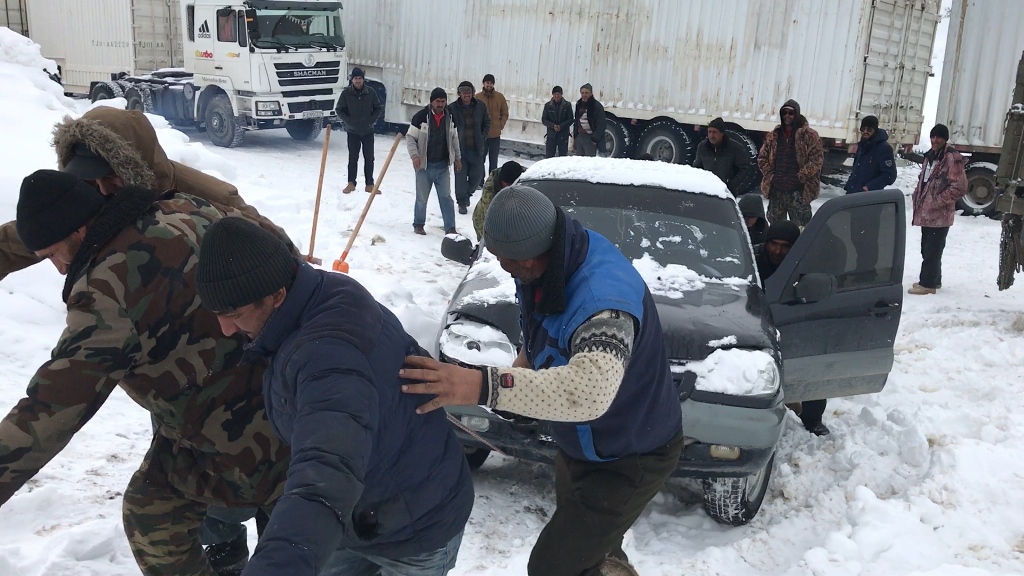 На этом участке трассы находится две стоянки дорожников. Но здесь насколько холодно (ведь местные морозы не уступают сибирским), что водители и пассажиры застрявших машин предпочитают вручную расчистить проход, чтобы только добраться до ближайшего более пригодного для ночевки места.