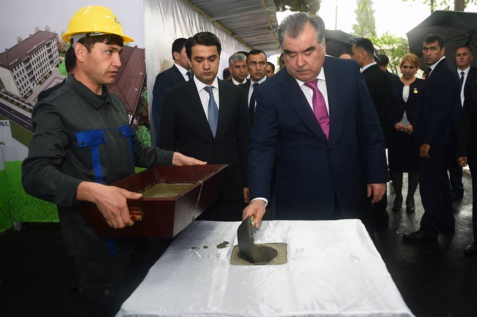 Президент Таджикистана Эмомали Рахмон и мэр города Душанбе Рустам Эмомали сегодня утром дали старт строительству нескольких объектов в столице. В частности, они заложили первый камень в новое здание Верховного суда Таджикистана. Оно будет возведено на улице Шевченко столичного района Исмоили Сомони, и обойдется бюджету приблизительно в 9 миллионов долларов.