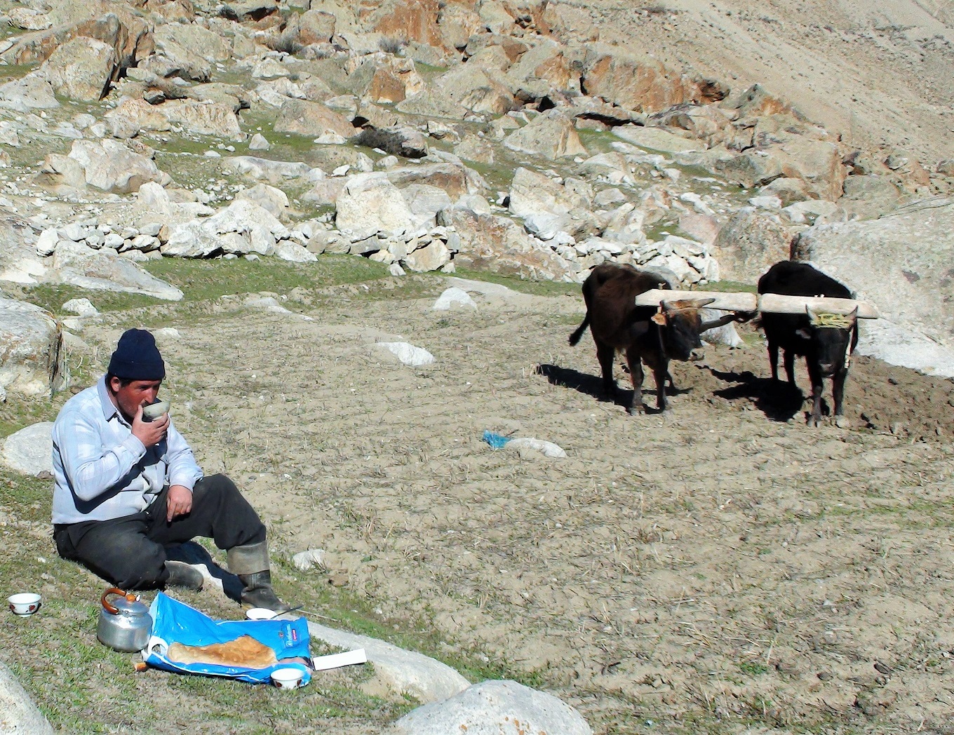 Между тем после долгой, холодной и полной катаклизмов зимы тихий и спокойный кишлак постепенно включается в бурную жизнь. Хозяева, многие из которых имеют собственных пашенных быков, разминают их на небольших клочках земли.