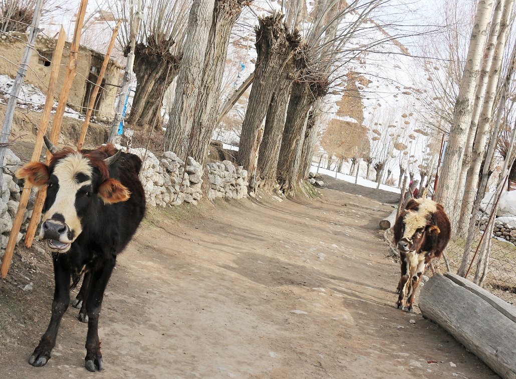 Весенние месяцы — самое трудное время для кишлаков Памира. В это время почти все кормовые запасы ссыхаются. А в этом году тем более. Обессиленные коровы ждут от своих хозяев «гьач» — срубленные ветки местных деревьев «вэд» (wed).