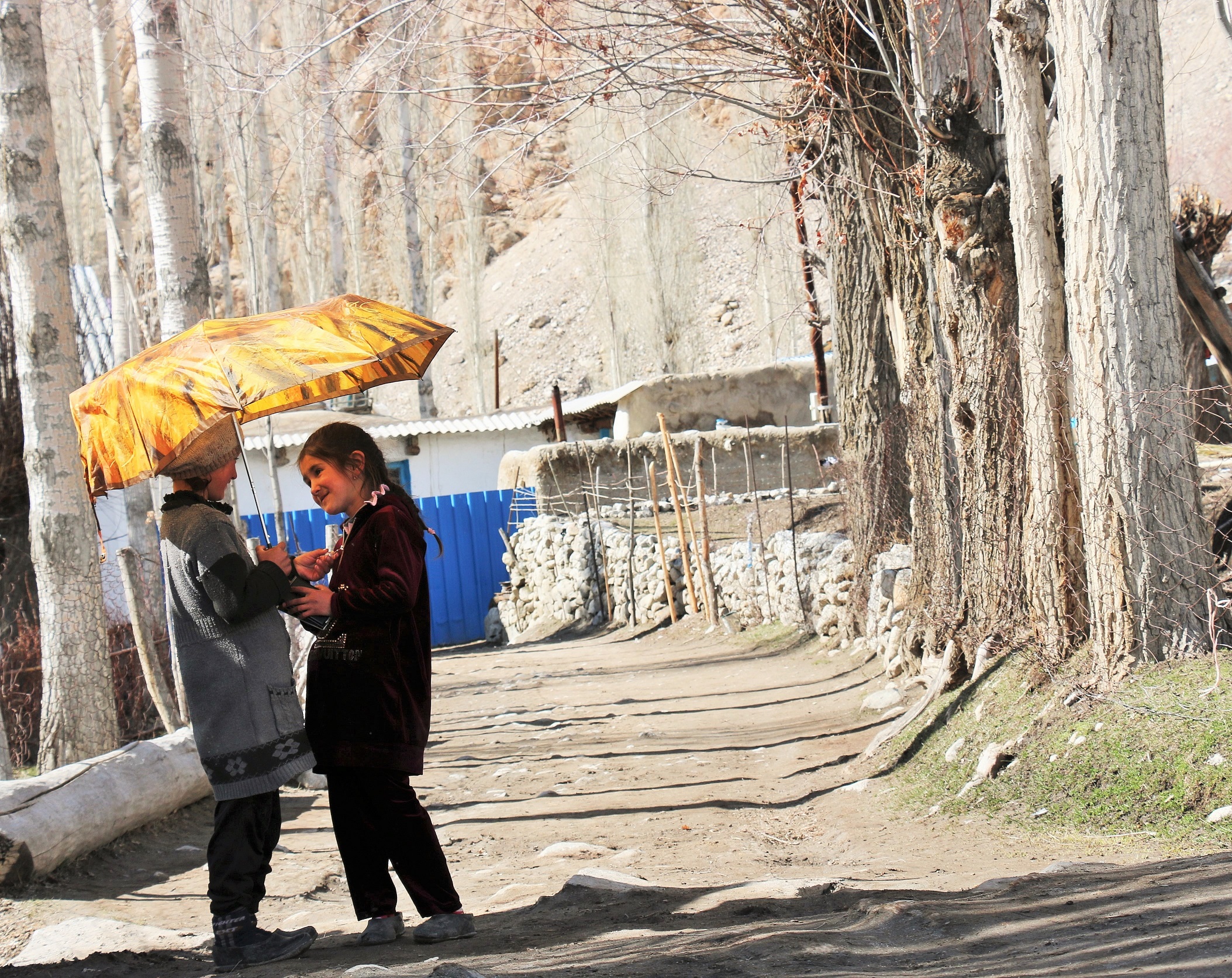 Молодая мама Адибабону, несмотря на морозные дни, после Навруза ежедневно приходит со своей маленькой дочкой к ручейку, который течет посередине кишлака. Она говорит, что ее младенец хорошо спит под звон ручья: «Пусть привыкает к природе».