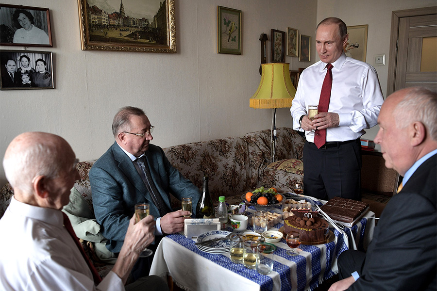 В преддверии Дня Победы президент России Владимир Путин навестил своего бывшего руководителя по работе в резидентуре КГБ в ГДР Лазаря Матвеева. Президента сопровождали бывшие коллеги по работе в разведке Сергей Чемезов и Николай Токарев, сообщает РБК.