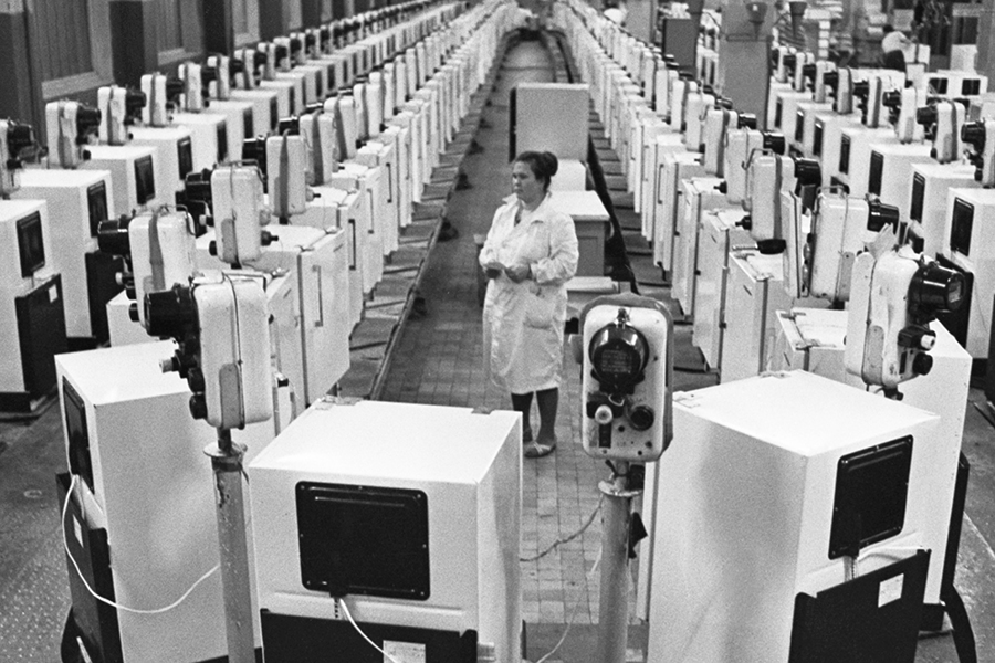 85 лет назад на заводе «Коминтерн» в Ленинграде были выпущены первые 20 советских телевизоров. Рядовой советский гражданин не мог себе такое позволить. Массовое распространение телевизоров началось в стране после войны, когда было запущено серийное производство модели КВН-49. Ее стоимость в разное время составляла 900–1200 руб. при средней зарплате 600–800 руб. Как развивалось производство советской бытовой техники и сколько она стоила — в фотогалерее РБК.