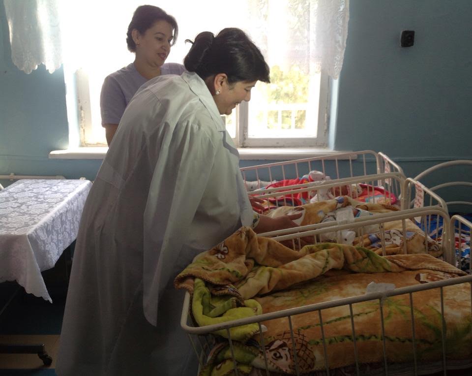 В широкой светлой палате дружно в ряд лежали тройняшки в симпатичных кроватках. Спустя мгновенье, видимо, почуяв присутствие чужого, малыши заерзали и пустились в плачь. Почувствовав нежные руки мамы и заботливых врачей —  Анастасии Шариповой и акушера Латифахон Рахмоновой, они угомонились, и мы продолжили беседу.