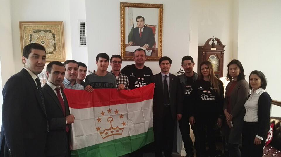 «Встречать нас вышло все посольство! Это было очень приятно, когда незнакомые люди, работники посольства тебя встречают, называют по имени, приглашают войти внутрь. Нас тут уже давно ждут. Видим добрые улыбки, знакомимся, шутим и понимаем, что мы дома! Посольство Таджикистана в США расположилось в самом центре Вашингтона, на Нью-Хэмпшир авеню в уютном домике с калиткой. Оформлено оно в красивом национальном стиле, с сюзане на диванах и на стенах. Все тут напоминает Родину, и люди, и обстановка, и угощение… Нас встретить и пообщаться пришли таджикские студенты, живущие в Вашингтоне. Все вместе большой таджикской семьёй мы сидели на мягких диванах, под пиалу зеленого чая говорили о прошедших поездках, о будущих планах, делились впечатлениями об Америке, и меня ни на секунду не покидало ощущение того, что я нахожусь дома, а не за 10000 км на другом конце Земли», — делится впечатлениями о встрече руководитель команды байкеров.