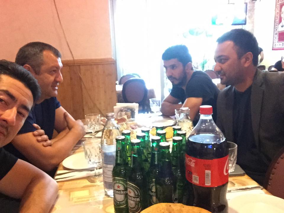 "За Душанбе!!! За Таджикистан!!! За Таджиков!!!! Тосты звучали один за другим! Бывшие душанбинцы, некоторые уже давно, другие не давно проживающие тут устроили замечательный приём по случаю нашего приезда в таджикском ресторане Азиза!!!!! Это было оооочень приятно!!! Здорово когда собираются Таджики по случаю приезда других Таджиков!!! Это радует"
