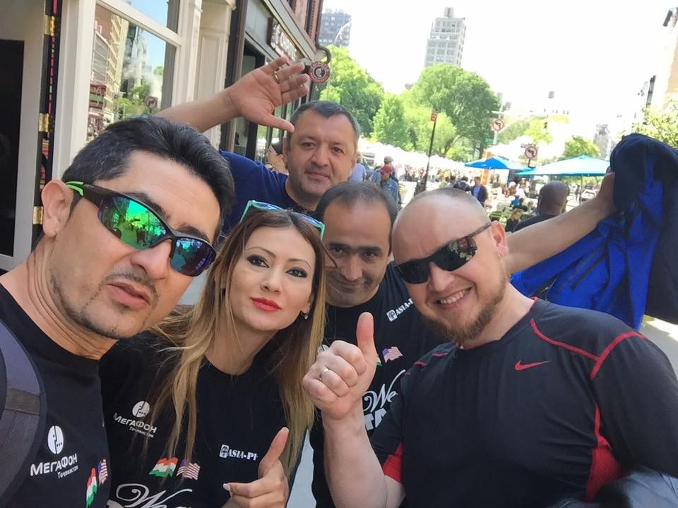 "Огромное спасибо вам ребята за тёплый приём!!! За заботу о нас!! За транспорт и жильё!!! За то что нашли время и возможность увидеть нас, показать нам Нью Йорк, дать тысячу советов и благополучно отправить нас дальше, оставив в наших сердцах грусть расставания и теплоту Таджикского гостеприимства!!!!!!!!!!!