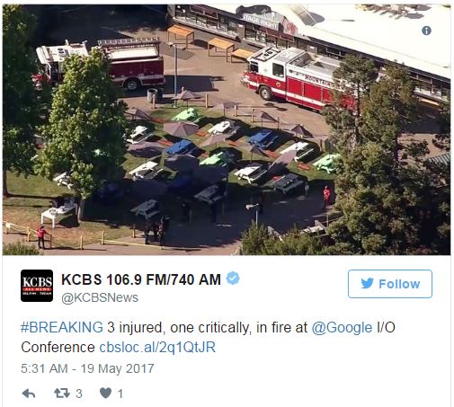 В заявлении Google говорится, что «небольшой пожар» произошел на кухне, и никто из участников конференции не пострадал. В компании сообщили, что все пострадавшие являются работниками, которые обслуживали мероприятие, они получают лечение.