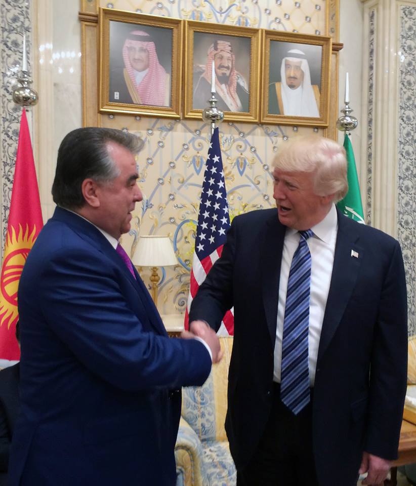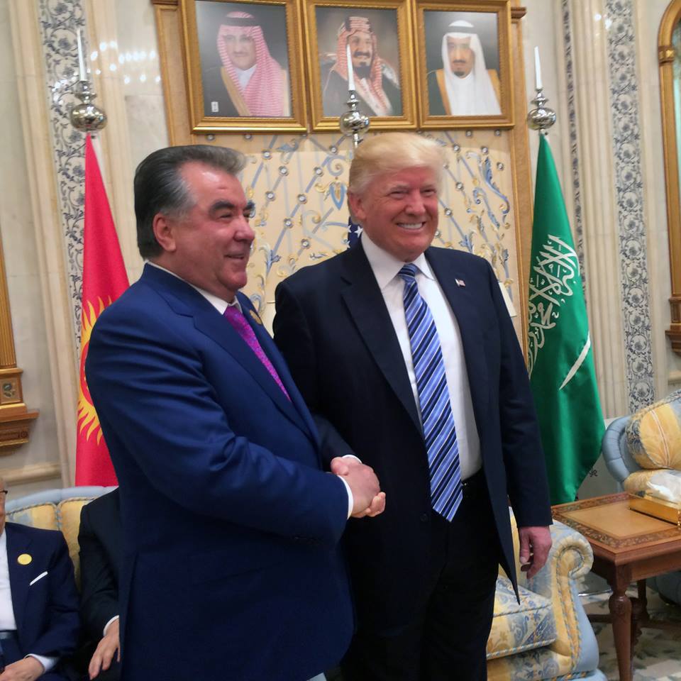 Эмомали Рахмон в Саудовской Аравии встретился с Президентом США Дональдом Трампом, побеседовал по душам с лидером Узбекистана Шавкатом Мирзияевым и пообедал с лидерами 50 мусульманских стран, прилетевших в Эр-Рияд на первый самммит глав государств арабского, исламского мира и Соединённых Штатов Америки, который состоялся 21 мая.