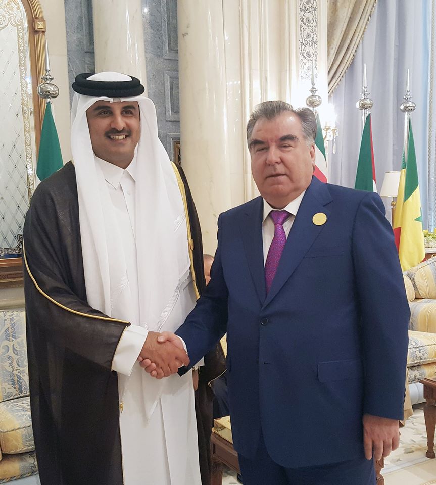 В рамках участия в саммите президент Таджикистана провел ряд двухсторонних встреч: с королем Саудовской Аравии Абдулазизом Оли Саудом, президентом США Дональдом Трампом, премьер-министром Пакистана Навазом Шарифом, президентом Афганистана Мухаммадом Ашрафом Гани, президентом Узбекистана Шакатом Мирзияевым, президентом Казахстана Нурсултаном Назарбаевым, президентом Азербайджана Ильхамом Алиевым, эмиром Кувейта Сабахом ал-Ахмад ал-Джобир ас-Сабах, эмиром Катара Шейхом Тамим бин Хамад Оли Сони.