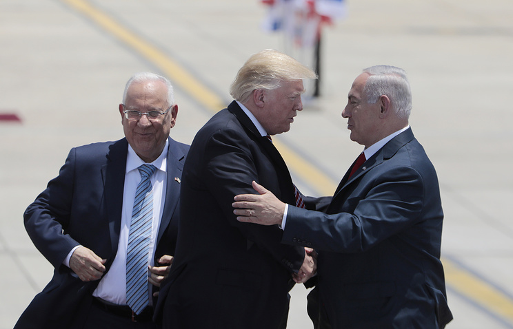 В международном аэропорту имени Давида Бен-Гуриона самолет Трампа встретили президент Израиля Реувен Ривлин, премьер-министр Биньямин Нетаньяху с супругой Сарой, спикер Кнессета (парламента страны) Юлий Эдельштейн, министры израильского правительства в полном составе, представители духовенства. На летном поле вдоль красной дорожки выстроили почетный караул.
