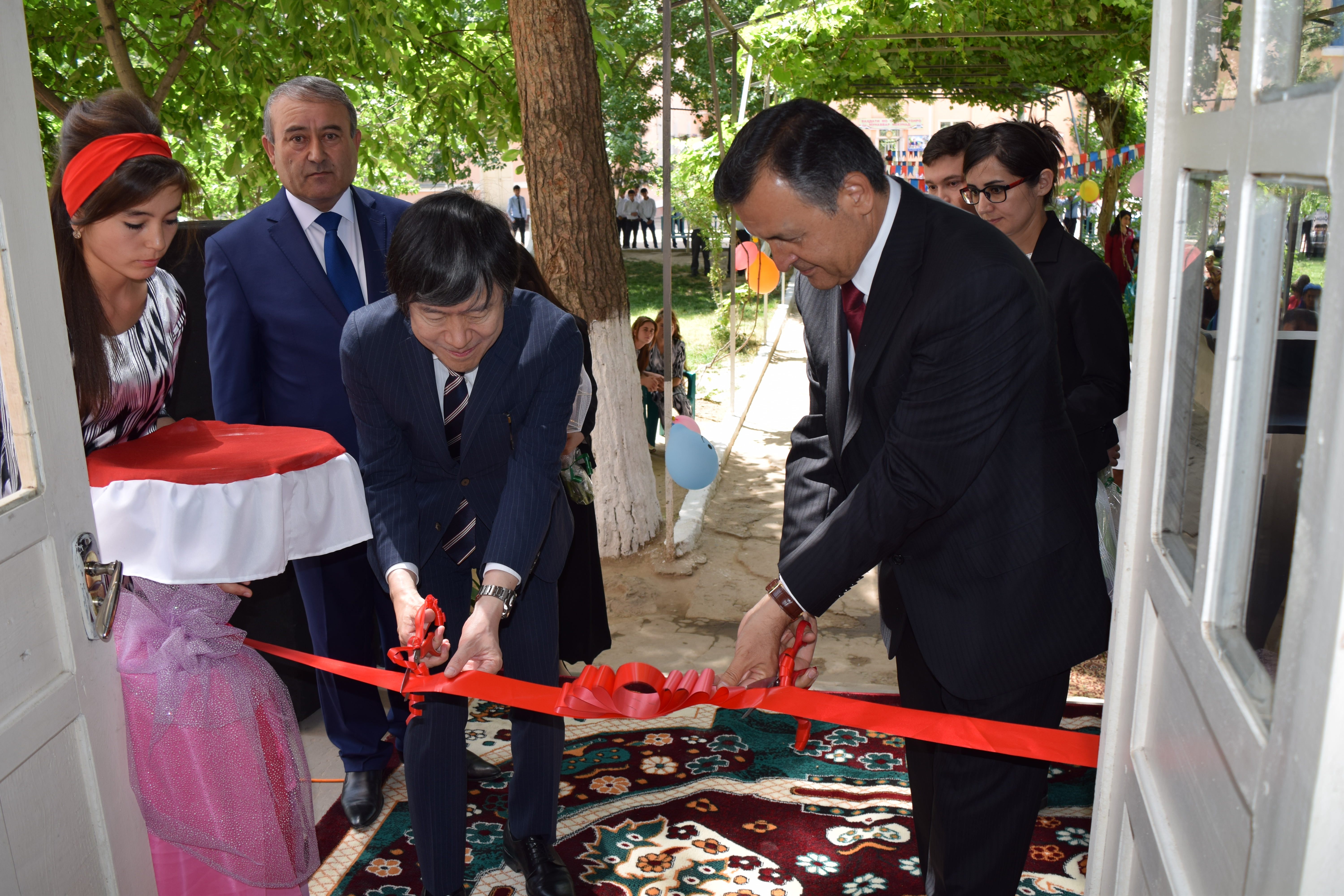 Чрезвычайный и Полномочный Посол Японии в Республике Таджикистан Хаджимэ Китаока принял участие в церемонии завершения «Проекта восстановления школы-интерната для сирот и детей, оставшихся без попечения родителей Вахшского района» Хатлонской области.