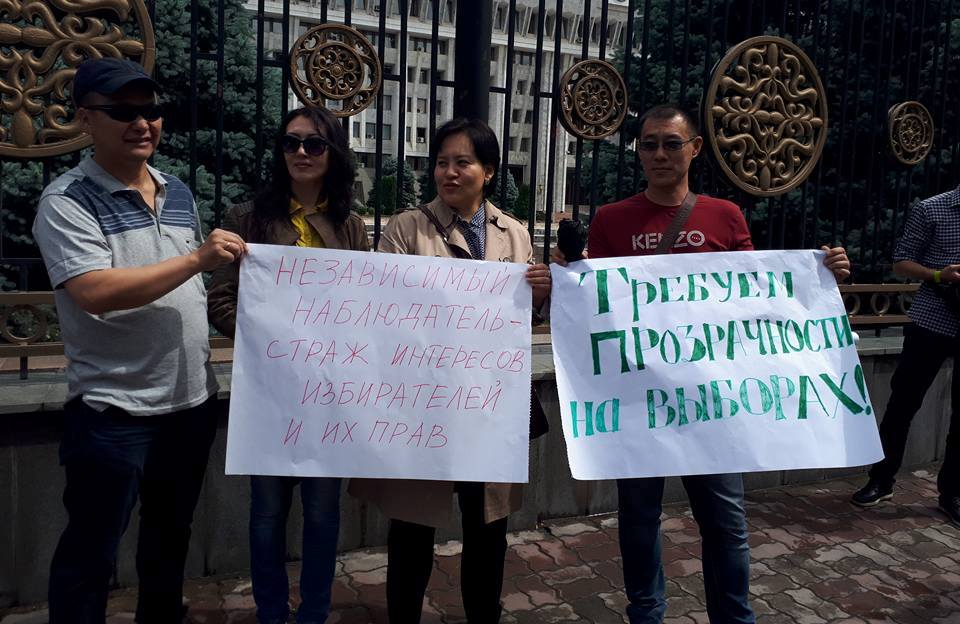 Правозащитники вышли на митинг к Белому дому в Бишкеке с требованием не принимать поправки, ограничивающие независимых наблюдателей на выборах. Согласно изменениям в закон «О выборах», наблюдатели не смогут передвигаться с участка на участок и обжаловать действия избирательных комиссий.