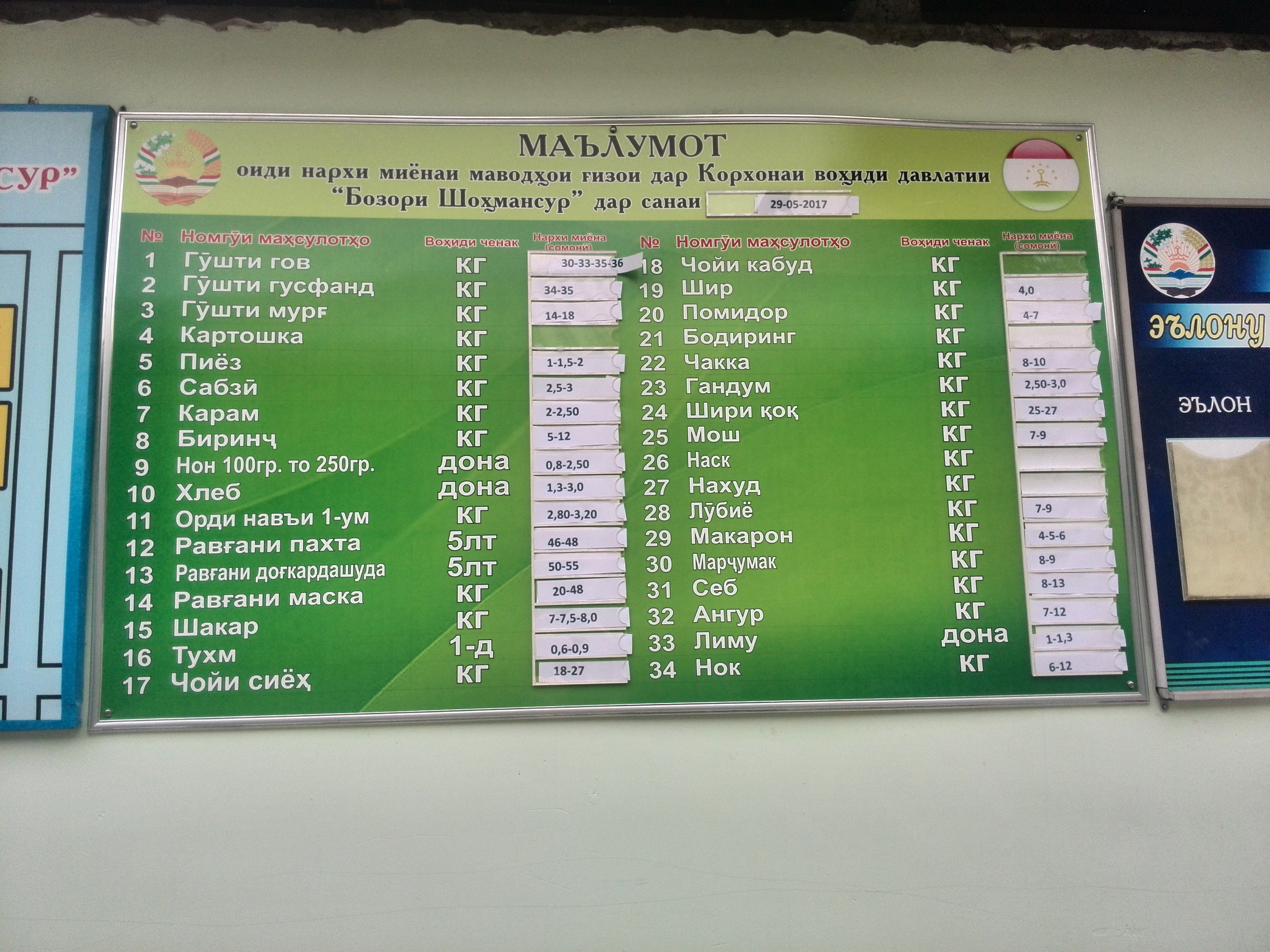 29 мая мы посетили центральный рынок Курган-Тюбе — «Фаровон — Кургонтеппа». Цены здесь выросли на картошку (с 3 до 5 сомони), мясо (с 33 до 36), помидоры (с 3 до 6) и огурцы (с 1 до 1,5-2 сомони).