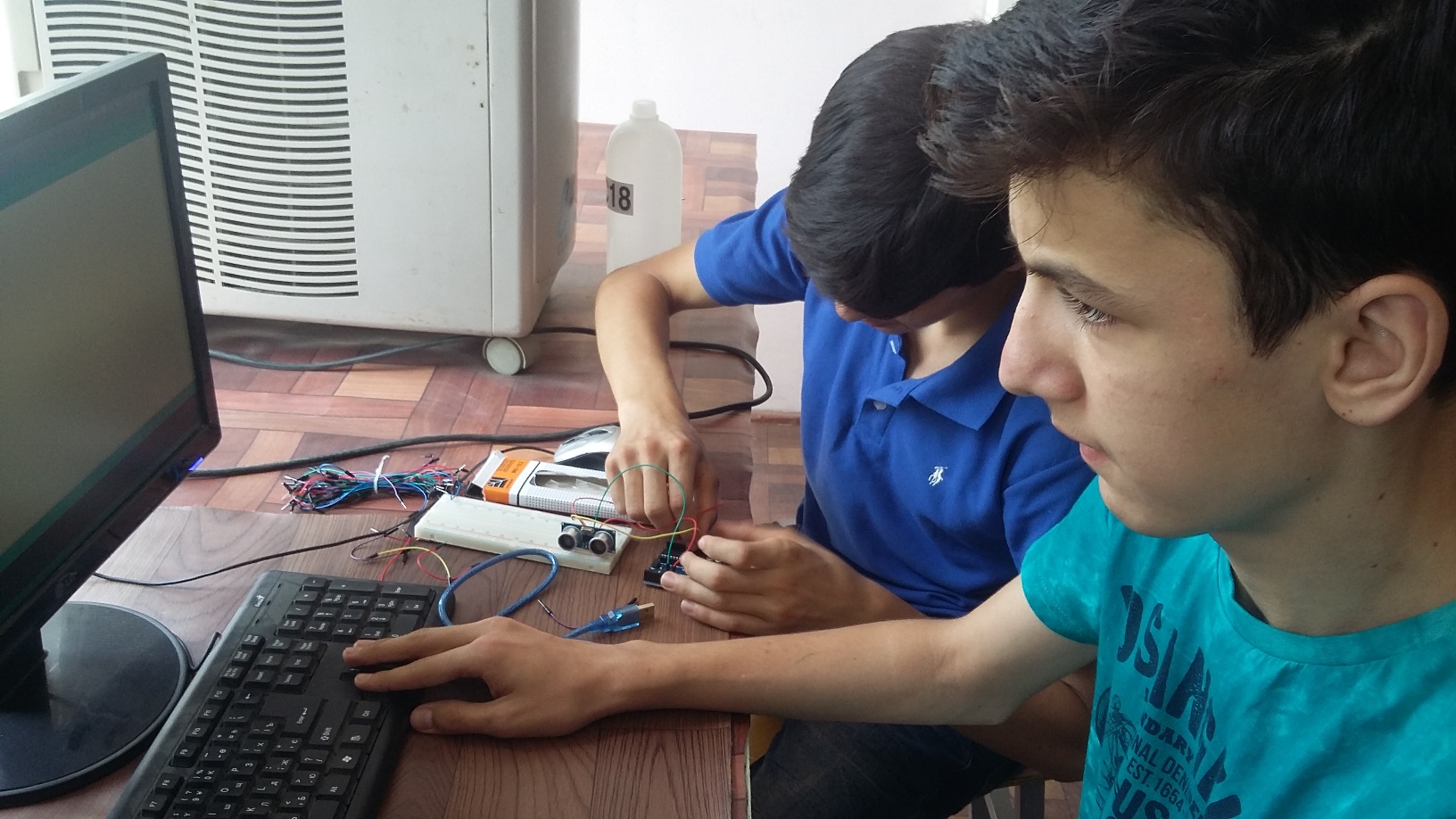 Например, Мухаммад Камолиддинов занимается в кружке с пятого класса. В день посещения гимназии, он занимался светодиодами. Писал программу, чтобы механизм заработал. Трудно объяснить словами, что тут проделывают ребята. Со слов мальчика я поняла, что он хочет чтобы «свет включался, когда нет электричества». «Муаллим мне объяснил, и вот я программу пишу», — деловито объясняет Мухаммад.