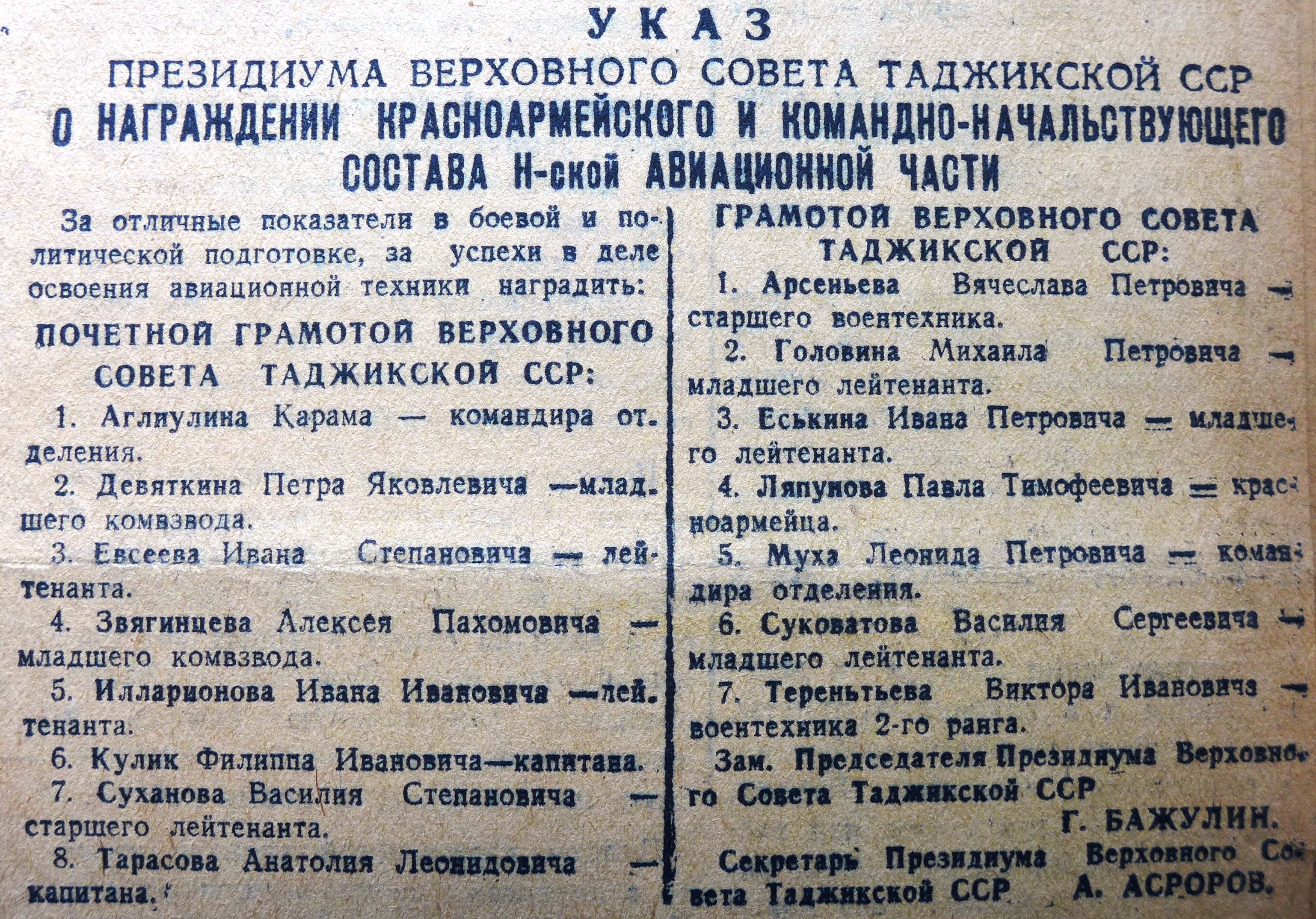 3 сентября 1940 года сотни горожан, делегации всех промышленных предприятий Сталинабада, работники Таджикского управления гражданского воздушного флота, аэроклуба и, конечно, летчики и красноармейский состав 116-го Сталинабадского истребительного авиационного полка пришли на похороны летчика-героя.