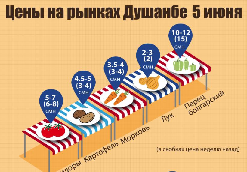Отметим, что цены в регионах республики сильно разнятся, поэтому мы указываем только столичные цены, принимая во внимание, что сам по себе Душанбе является «импортером» сельскохозяйственного продовольствия.