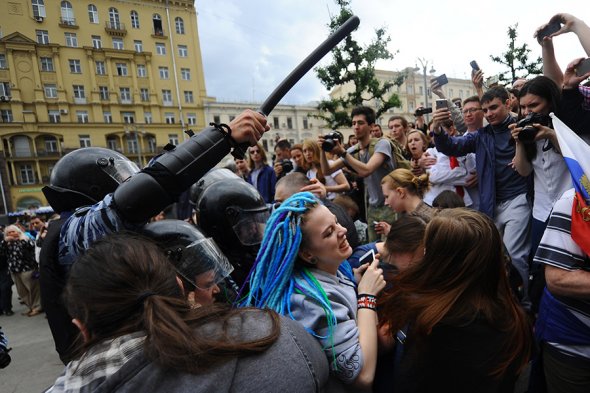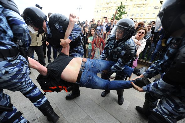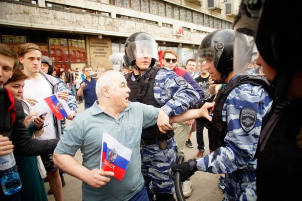 Во время акции протеста в центре Москвы в День России, 12 июня, были задержаны 866 человек, 32 из которых были оставлены на ночь в 11 отделениях полиции города, об этом сообщает «ОВД-Инфо» (организация оказывает поддержку задержанным).