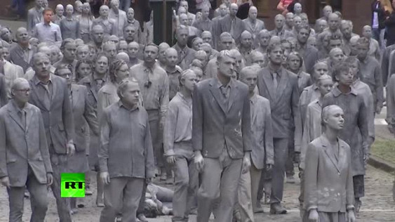 Демонстранты, покрасившие себя в цвет глины, то двигались, то застывали. В конце акции они разорвали тёмно-серые одежды и начали танцевать в разноцветных футболках.