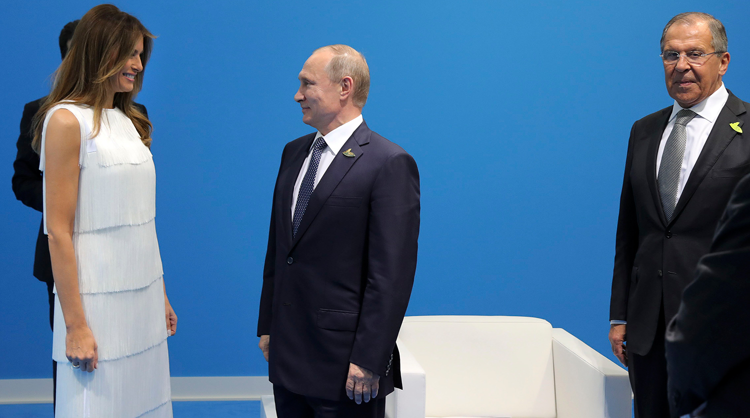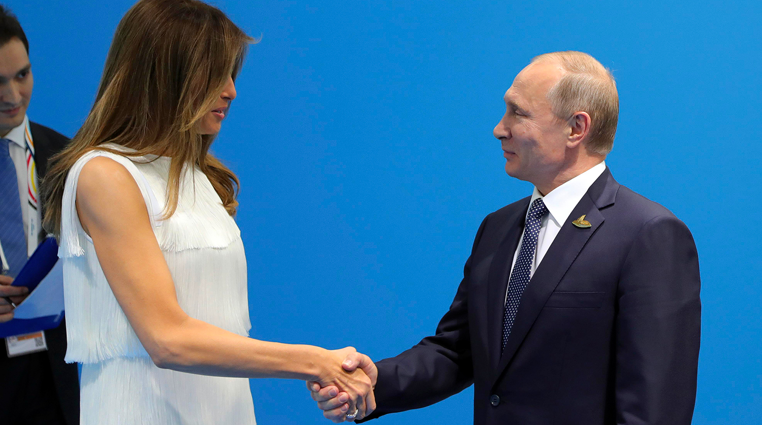 На полях саммита «большой двадцатки» президент России Владимир Путин впервые встретился не только с президентом США Дональдом Трампом, но и с его супругой Меланьей Трамп. Первая леди Соединенных Штатов и российский президент пожали другу руки и обменялись приветствиями.